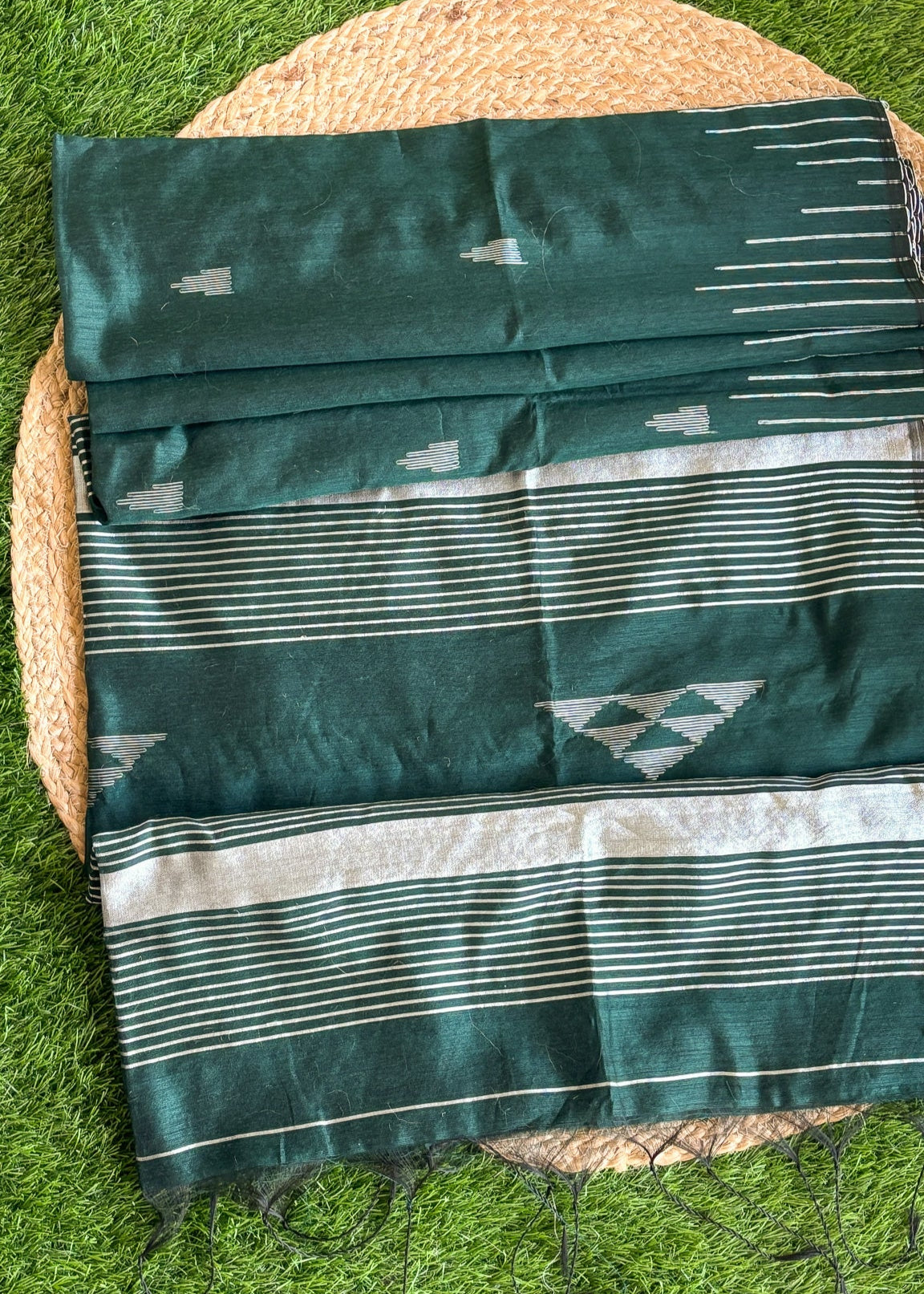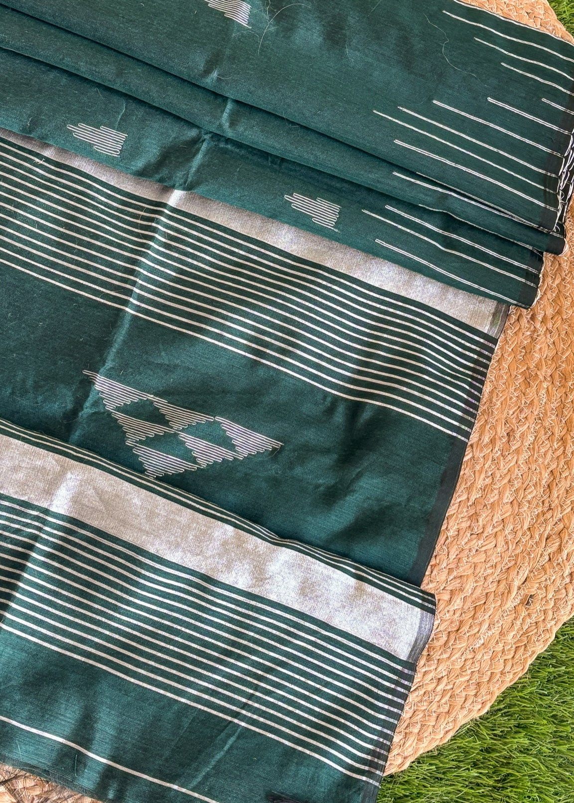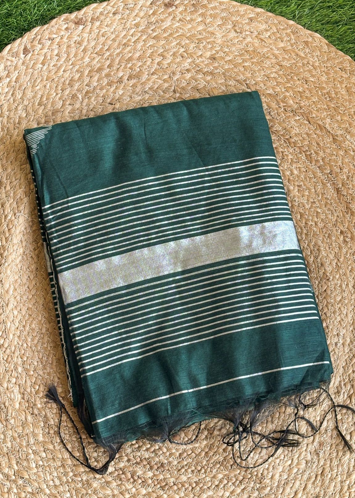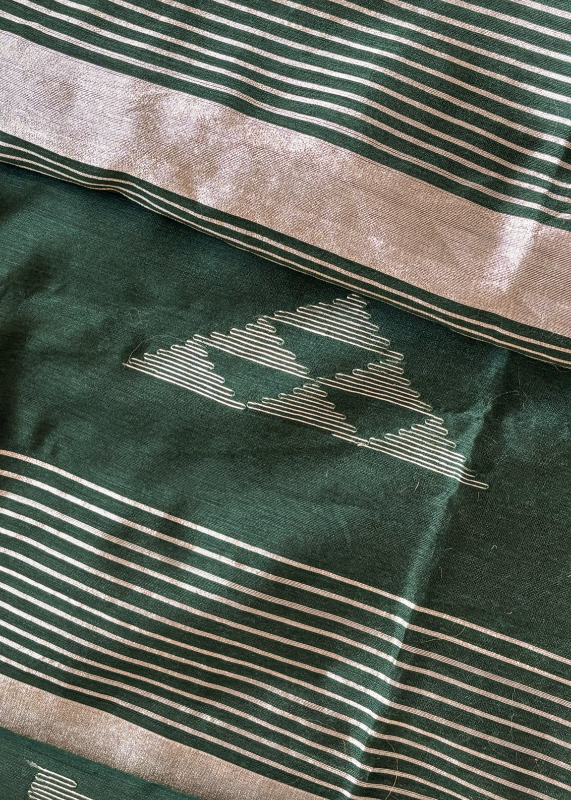 A refined blend of tradition and minimalism, Chandrika Stripes sarees feature delicate zari lines woven on soft cotton silk, accented with bold silver borders. Lightweight, breathable, and timeless — these sarees are your perfect companion from festive mornings to elegant evenings. With their understated charm and metallic detailing, they whisper luxury without shouting for attention.