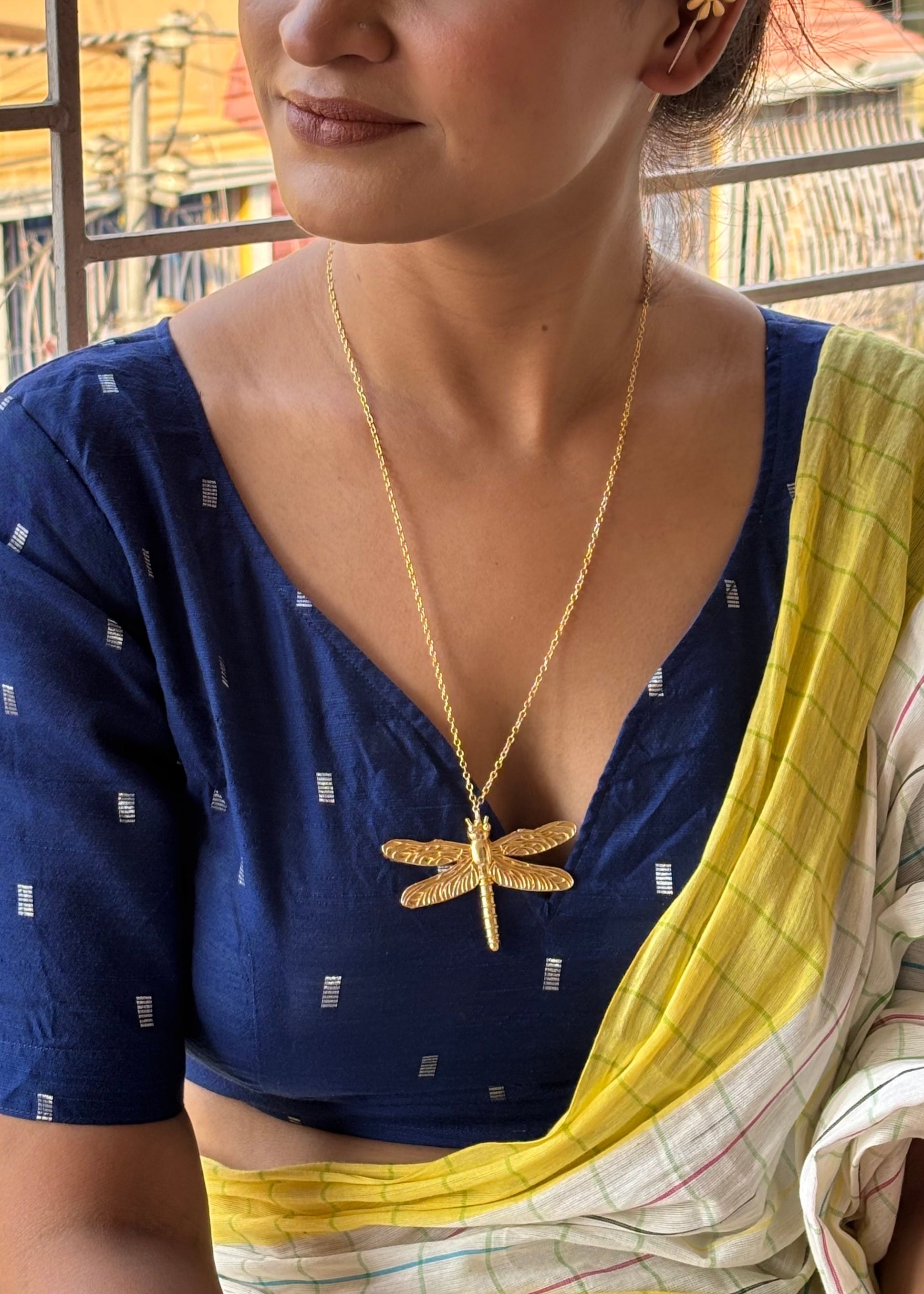 Meet Drift — a whimsical brass neckpiece inspired by the delicate strength of a dragonfly. Bold in size yet breezy in spirit, this piece brings a touch of nature’s magic to your look. Wear it with linen dresses or sarees, and let the wings do the talking. It’s not just jewellery, it’s a little freedom on a chain.