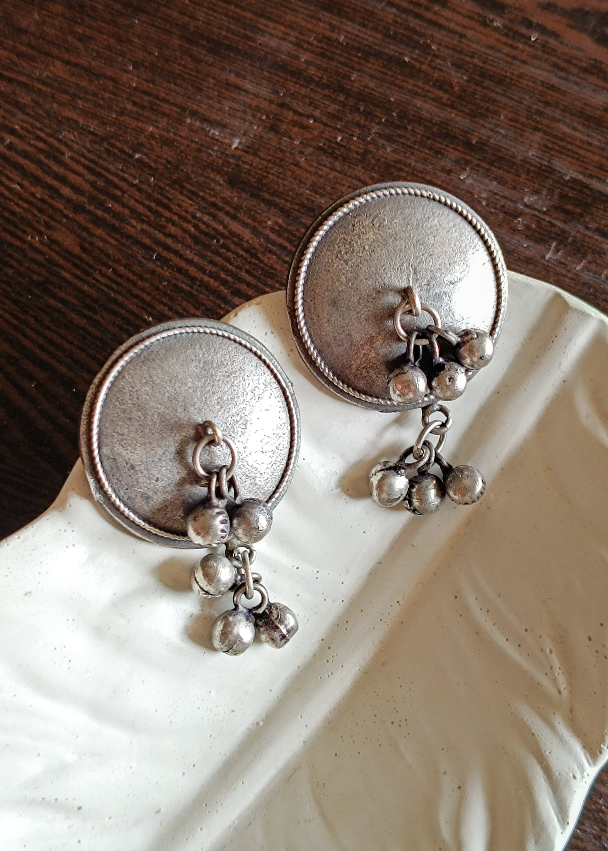 Understated and effortlessly graceful, Noor features a clean oxidised silver disc with gently dangling ghungroos that add a rhythmic charm to every movement. Perfect for those who prefer quiet elegance with a hint of folk flair — a timeless essential in every jewelry box.