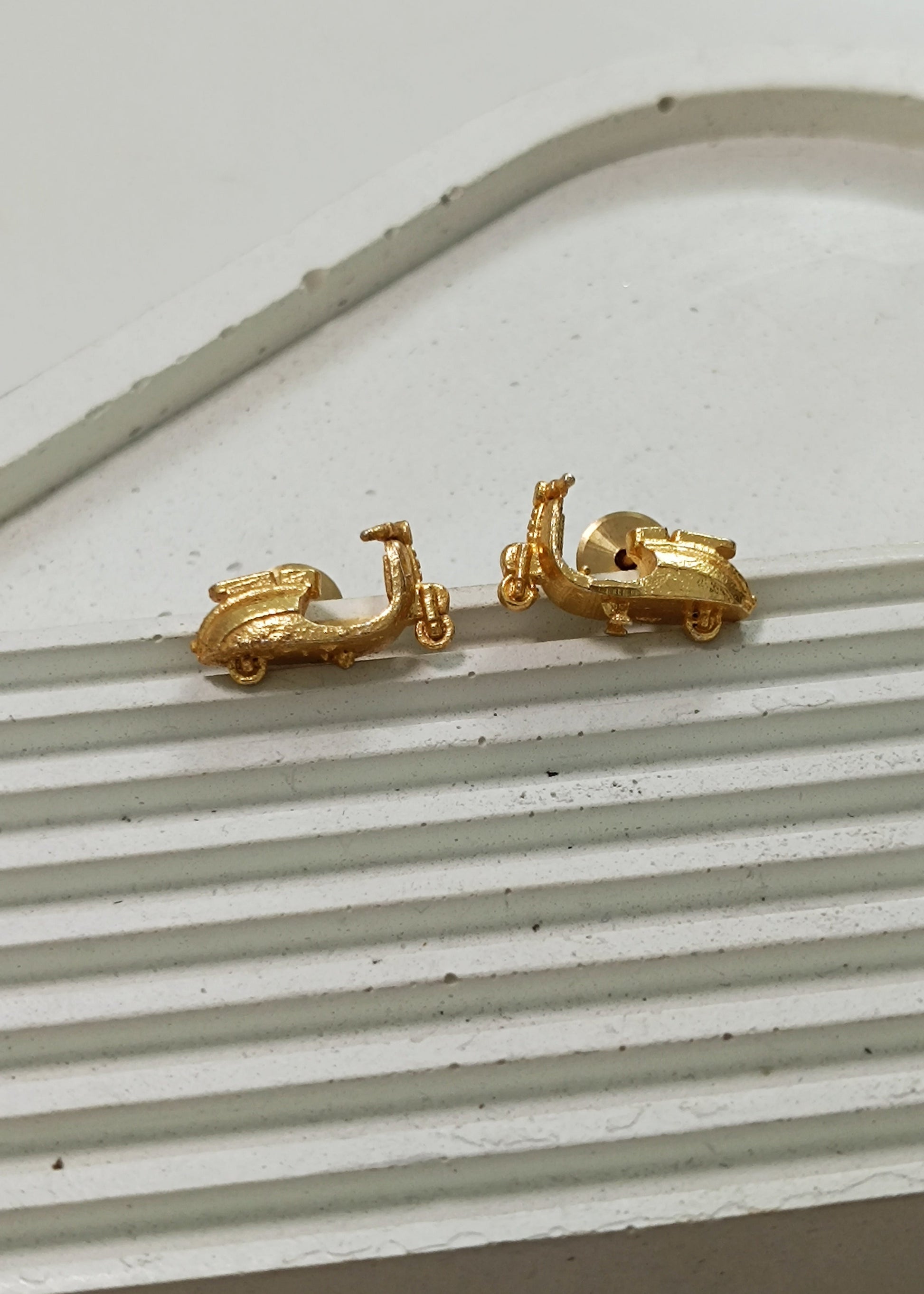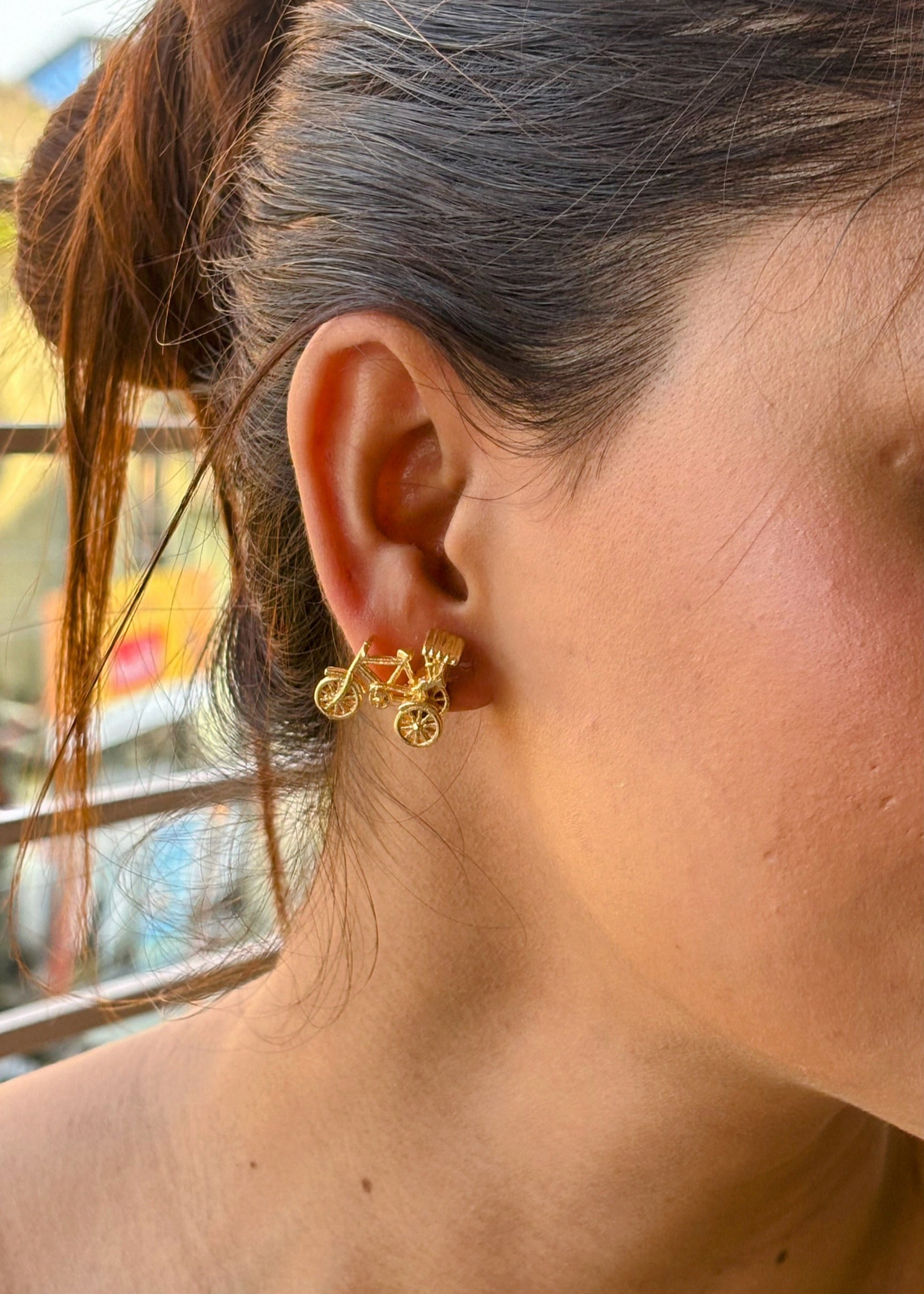 Elevate your ensemble with our Ride Charms Earrings, featuring meticulously crafted miniature vehicles—rickshaws, scooters, and cars—that dangle with distinctive charm. These sophisticated accessories blend whimsical transportation motifs with elegant design, creating a subtle statement piece for the discerning individual who appreciates unconventional elegance.