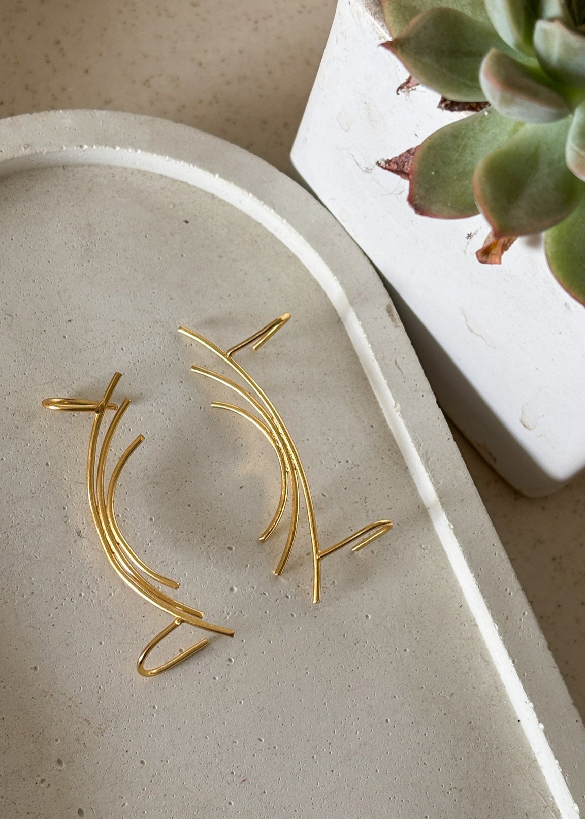 The Zaria Handmade Brass Ear Cuff embodies artisanal excellence with its distinctive geometric half-circle profile. Meticulously crafted from premium brass, this sophisticated accessory features a thoughtfully executed kind design that sits elegantly against the ear without requiring piercings. The warm metallic finish complements diverse aesthetics while the balanced proportions ensure both comfort and refined visual impact.