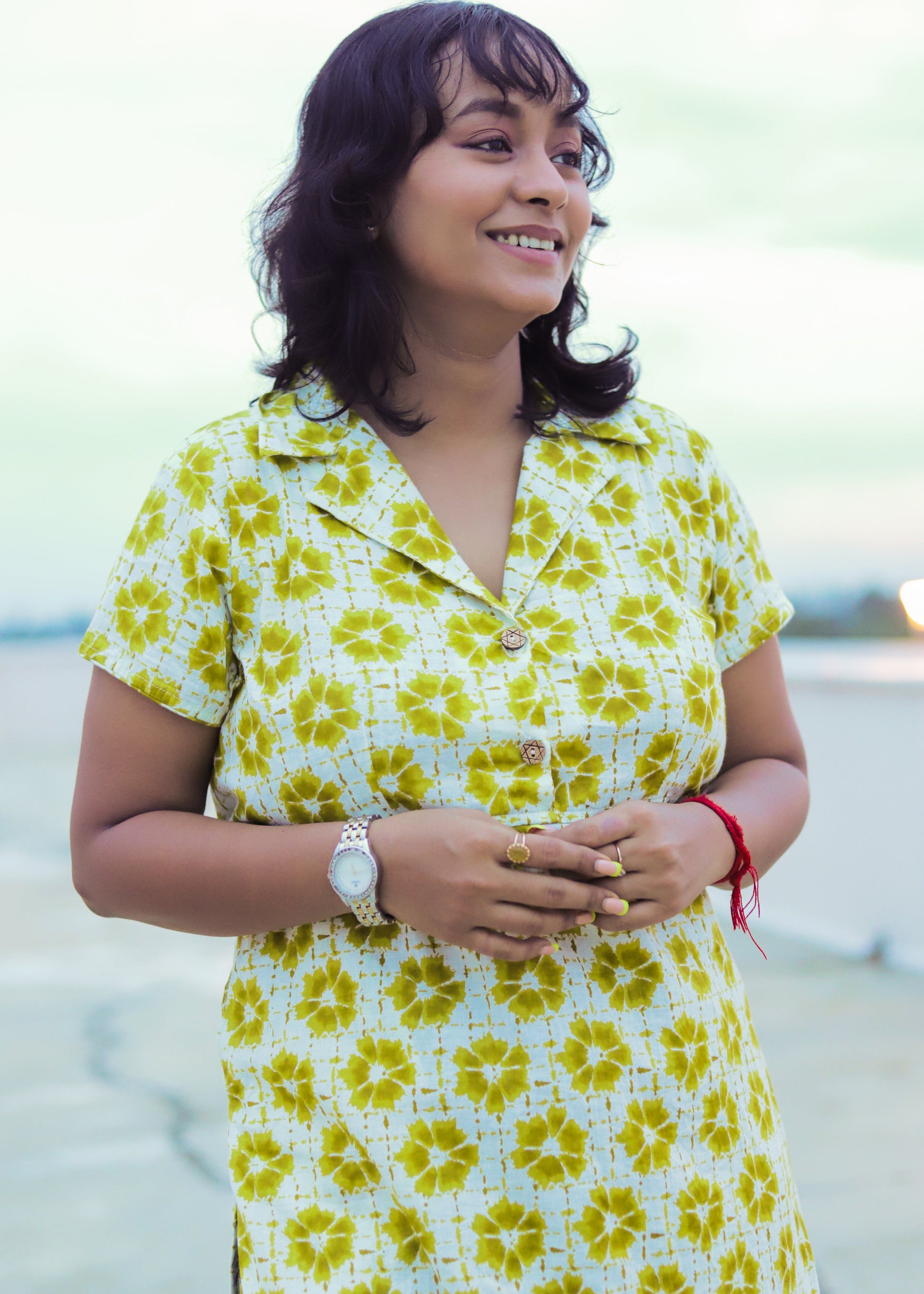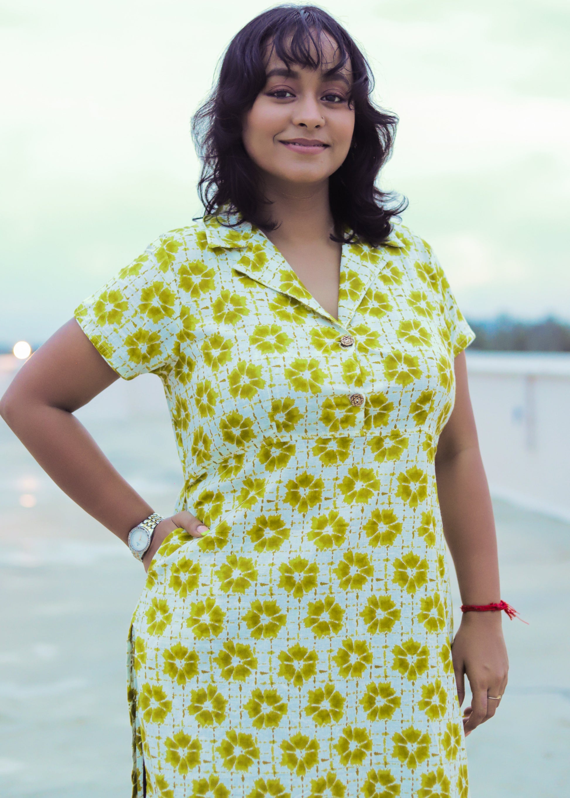 Experience effortless elegance with our Ditsy Muse Collared Kurti. Crafted from pure cotton for exceptional comfort, this sophisticated piece features a refined collar, practical half sleeves, and a convenient pocket. The thoughtful design ensures breathability while maintaining a polished silhouette perfect for both casual and semi-formal occasions.