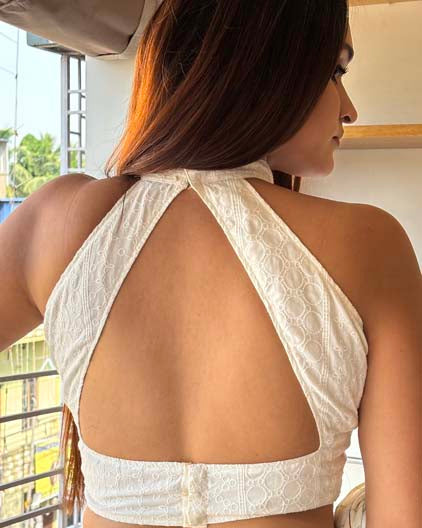 Elevate your ensemble with our pristine Hakoba Halter Neck Blouse. Meticulously crafted with traditional hakoba embroidery on premium white fabric, this sophisticated halter design accentuates your neckline while offering effortless elegance. Perfect for both formal occasions and contemporary styling with your favorite separates.