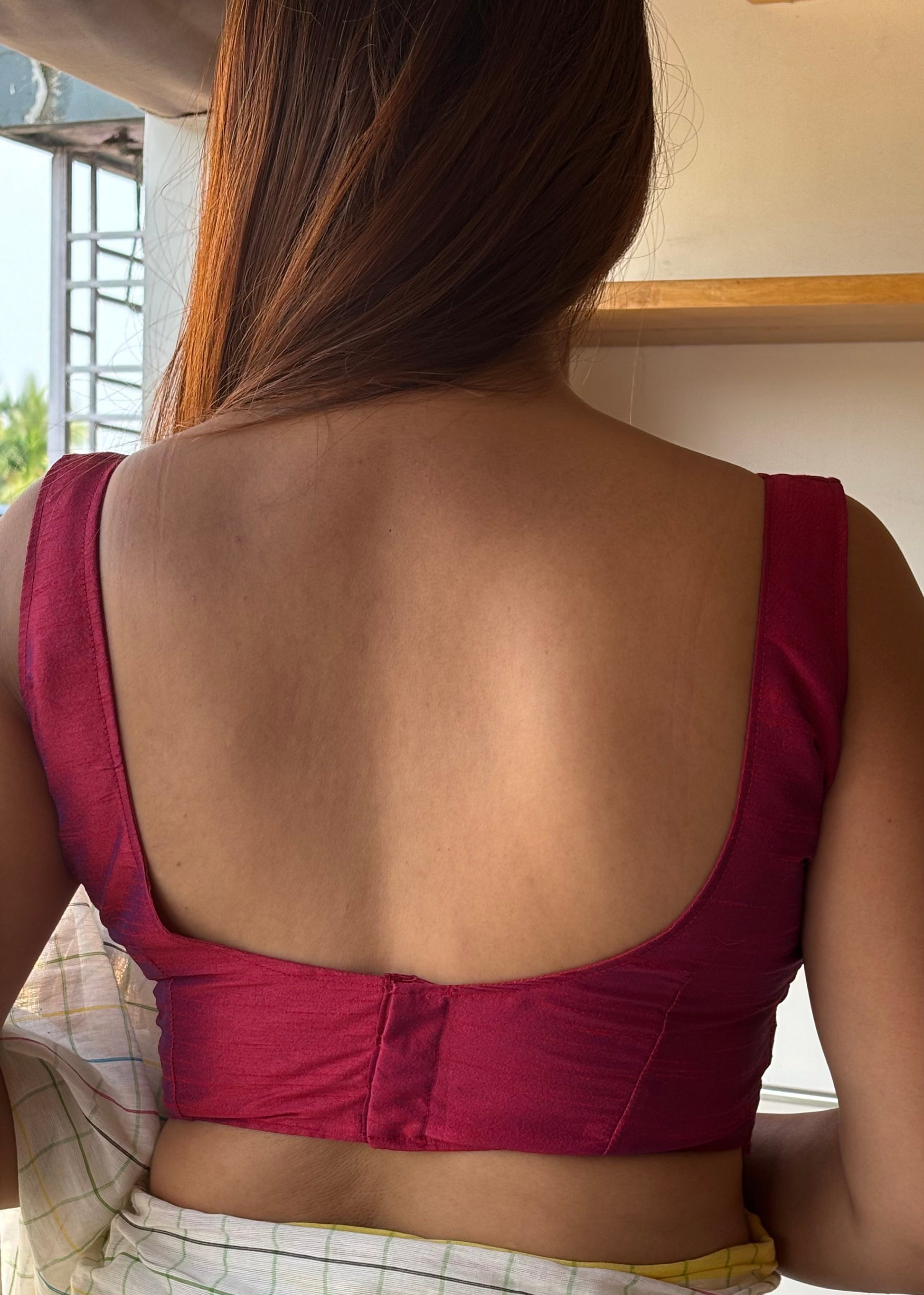 Indulge in the luxurious texture of our Red Silk Sleeveless Blouse, crafted from premium raw silk. This sophisticated garment drapes elegantly against the skin, offering both comfort and refined style. The vibrant red hue makes a confident statement while the sleeveless design ensures versatility for both professional settings and evening occasions.