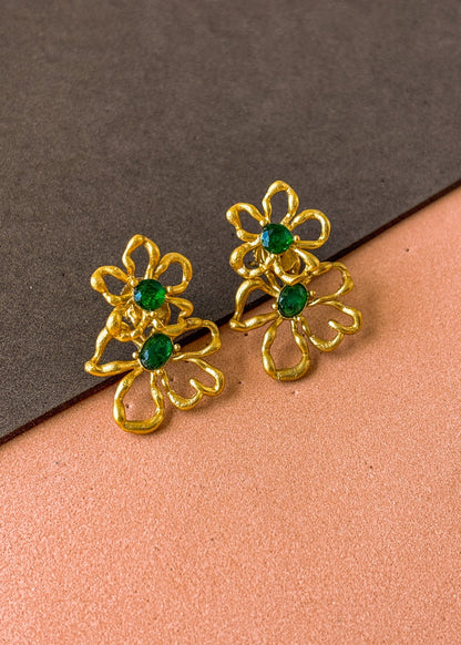 Handcrafted in molten brass with gemstone accents, Scarlet Bloom is where structure meets softness. Available in ruby red and emerald green, this bold floral silhouette speaks of confidence and quiet glamour.