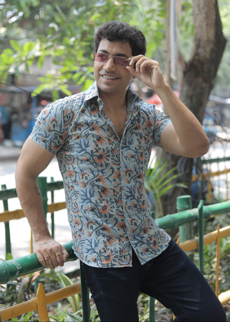 The Forest Tide exemplifies refined contemporary aesthetics with this distinguished blue cotton shirt for men. Embellished with meticulous kantha embroidery and an artistic block abstract print, this sophisticated garment marries premium cotton craftsmanship with a classic silhouette. The thoughtfully curated design elements transform this piece into a versatile statement that navigates seamlessly between casual sophistication and formal elegance.