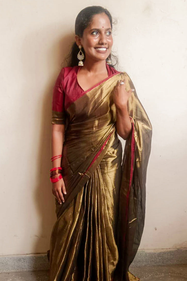 Experience timeless elegance with the Raga Tissue in golden and maroon. Crafted from classic mul tissue cotton, this piece features a delicate maroon thin border that adds a refined touch. Its lightweight texture ensures comfort while maintaining a sophisticated look, perfect for any occasion that calls for understated grace.