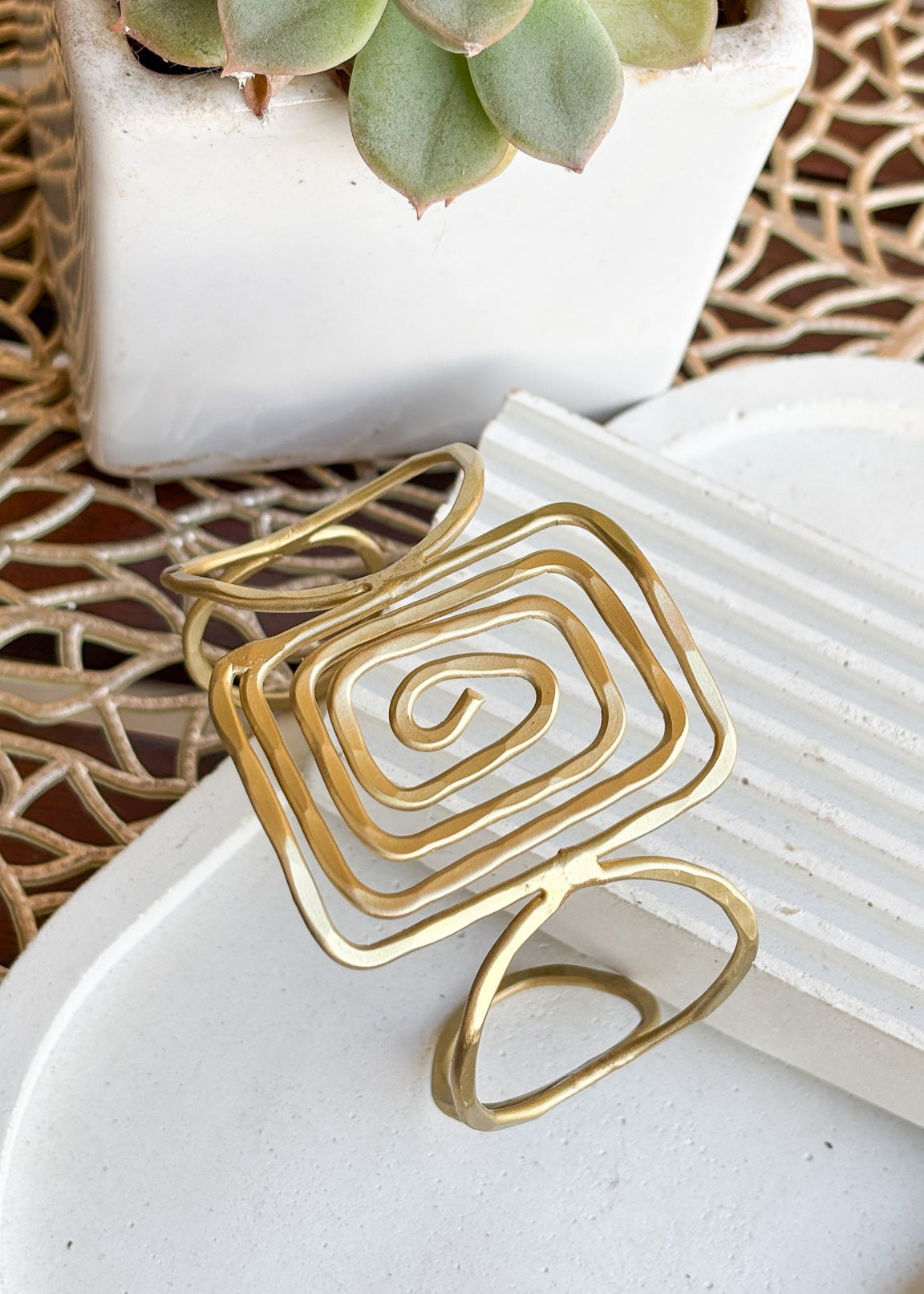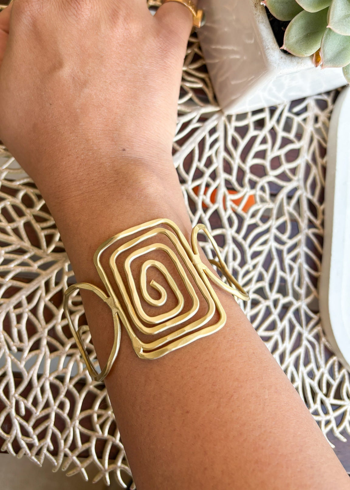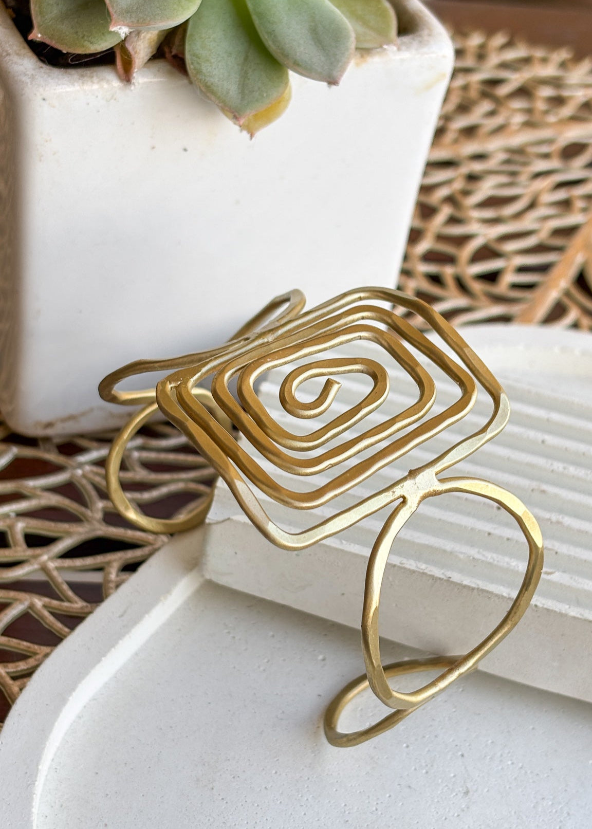 Elevate your ensemble with the Lavanya Cuff, an exquisite open brass cuff adorned with striking black and red stones. This sophisticated accessory balances traditional craftsmanship with contemporary design, creating a statement piece that transitions effortlessly from day to evening wear. The contrasting stones catch the light with subtle brilliance, adding refined elegance to any attire.
